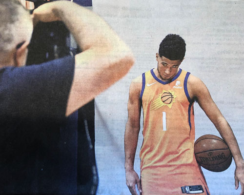 Worried about the Suns this year? The Arizona Republic, October 1,2019, photo of Devin Booker on opening day of camp, tells you all you need to know.